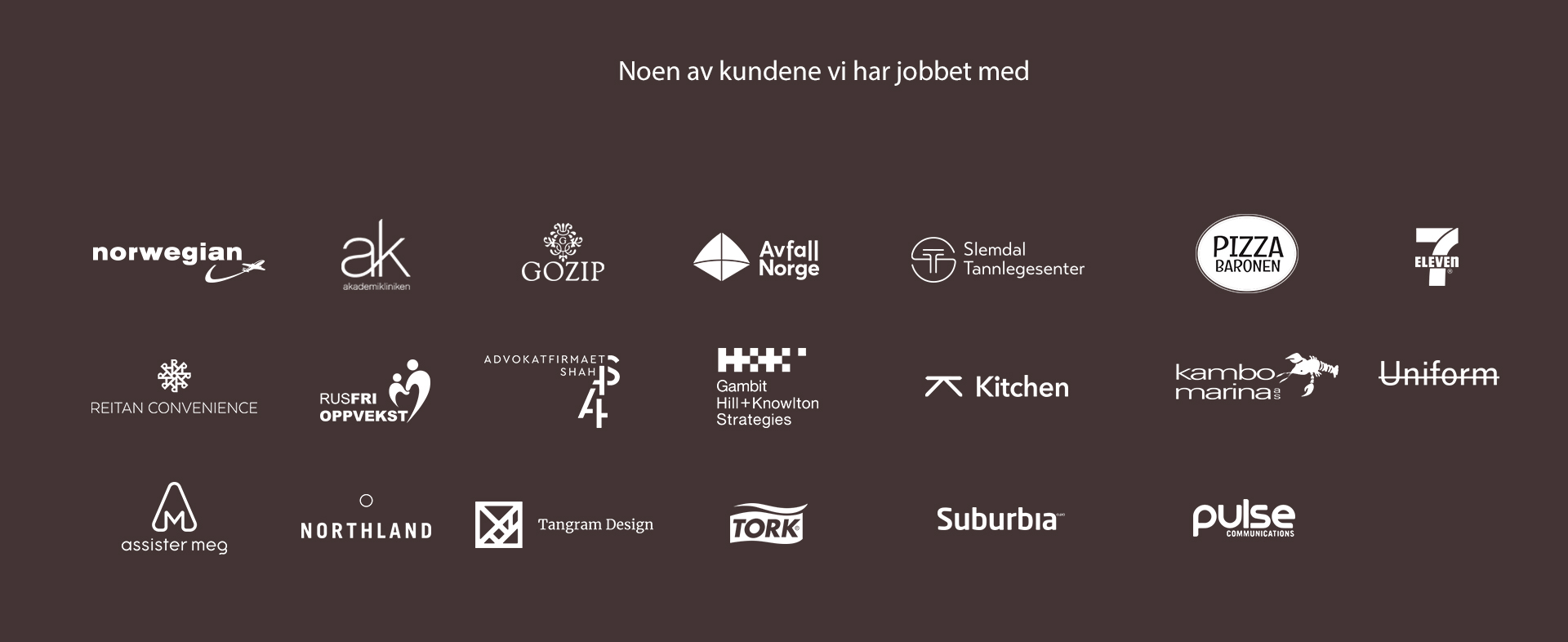 Vi er et lite design- og kommunikasjonsbyrå med over 20 års erfaring fra bransjen. Vi drives av design med kvalitet, med dette mener vi helhetlig design som presenterer våre kunders verdier på best mulig måte.